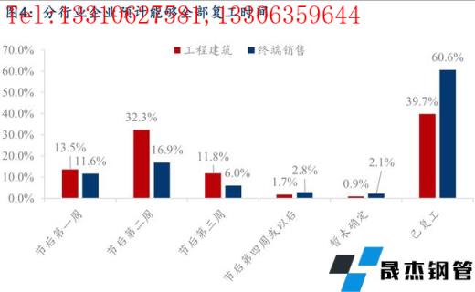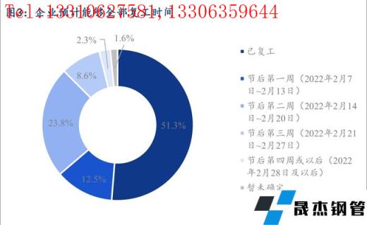 2、對(duì)于復(fù)工時(shí)間的調(diào)研發(fā)現(xiàn):今年就地過年員工的比例雖然不及去年同期,但依然處于較高水平,工人返工較為便捷,因此節(jié)后企業(yè)預(yù)計(jì)能夠全部復(fù)工的時(shí)間也較去年大體相當(dāng),目前已全面復(fù)工樣本企業(yè)263家,占比達(dá)到51.3%,節(jié)后第二周內(nèi)能夠復(fù)工的樣本企業(yè)占比高達(dá)87.5%。