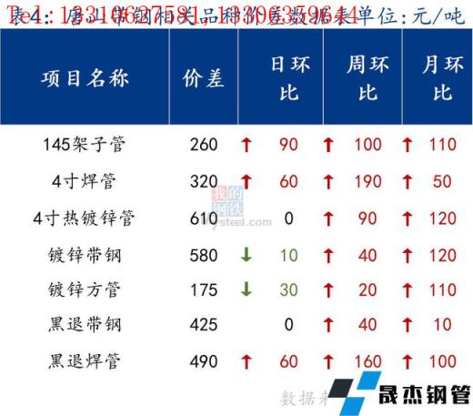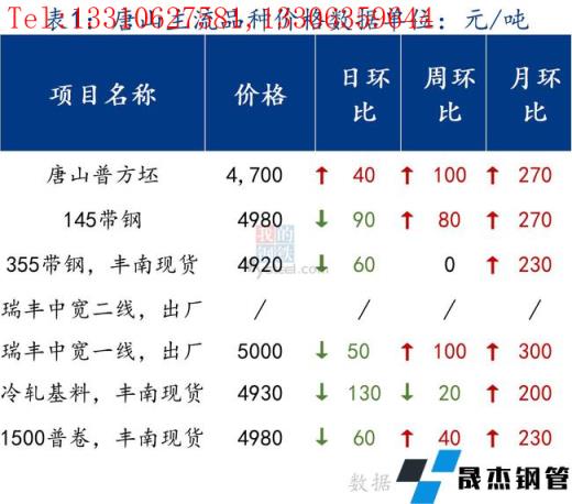 今日唐山管帶價格穩(wěn)中回落,其中355帶鋼價格較上周五跌60元/噸,145帶鋼較上周跌90元/噸,管材價格暫且持穩(wěn)。市場成交清淡,管長及帶無縫厚壁鋼管廠家產(chǎn)量不高,調(diào)坯軋材廠仍處于停產(chǎn)階段。