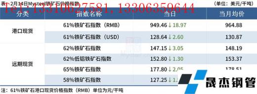 ◎ 2月14日,全國(guó)主港鐵礦石成交90.30萬(wàn)噸,環(huán)比增7.9%;237家主流貿(mào)易商建材成交5.61萬(wàn)噸。