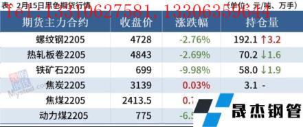 焦炭:2月15日,焦炭市場弱穩(wěn)運(yùn)行,唐山個(gè)別無縫厚壁鋼管廠家焦炭提降200元/噸,主流地區(qū)暫無回應(yīng),市場多觀望為主。本周焦企開工率有所下降,焦企多保持低庫存運(yùn)行,考慮當(dāng)前焦化普遍處于虧損狀態(tài),且后續(xù)存在復(fù)產(chǎn)預(yù)期,焦企抵觸情緒進(jìn)一步強(qiáng)化。無縫厚壁鋼管廠家掉庫情況明顯,部分低庫存無縫厚壁鋼管廠家已經(jīng)開始補(bǔ)庫,采購情緒積極,考慮冬奧會(huì)結(jié)束部分無縫厚壁鋼管廠家有復(fù)產(chǎn)預(yù)期,市場情緒稍有好轉(zhuǎn),預(yù)計(jì)短期內(nèi)焦炭市場穩(wěn)中偏弱運(yùn)行。