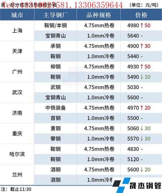 ◎樂(lè)從:16日早盤(pán)熱卷市場(chǎng)價(jià)格上漲50,4.75以上普柳燕4930-4940,2.75普5000-5150錳5120-5140。(單位:元/噸)