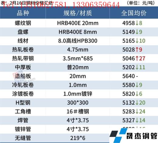 建筑厚壁無縫鋼管:2月16日,全國31個主要城市20mm三級抗震螺紋鋼均價4958元/噸,較上個交易日跌8元/噸。短期來看,隨著原料價格的走弱,需求持續(xù)低迷,市場悲觀情緒漸濃,貿(mào)易商低價套現(xiàn)操作較為普遍。元宵之后下游工地存在一定復(fù)工預(yù)期,但未來幾日又將持續(xù)雨水天氣,需求釋放力度仍有待考證,預(yù)計17日國內(nèi)建筑厚壁無縫鋼管價格或?qū)⒅沟蠓€(wěn)。