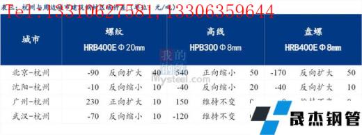 從區(qū)域價差來看,今日華北地區(qū)與杭州市場螺紋鋼價差繼續(xù)反向擴大;東北、華中地區(qū)與杭州市場價差繼續(xù)縮?。蝗A南地區(qū)與杭州市場螺紋鋼價差正向擴大。