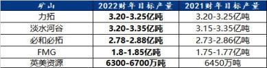 ◎ 澳洲巴西19港發(fā)運(yùn)量顯示,2021年澳巴鐵礦發(fā)運(yùn)總量12.77億噸,環(huán)比增加1701萬噸,增量主要來自于巴西。根據(jù)各大礦山2022財(cái)年生產(chǎn)計(jì)劃情況來看,力拓和淡水河谷目標(biāo)產(chǎn)量與去年基本持平,必和必拓和FMG均存在一定增量,并且高礦價(jià)下,其它礦山例如英美等也將有一定增產(chǎn)的潛力,預(yù)計(jì)2022年全球鐵礦石產(chǎn)量同比將小幅增加。