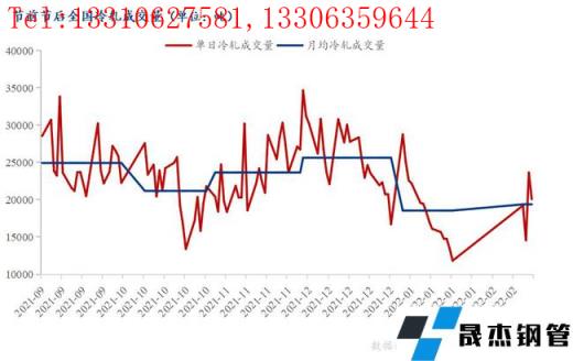 2022年2月17日(農(nóng)歷正月十七)全國(guó)162家冷軋成交量為20073噸,年后成交量最高值23649噸,周度平均成交量為19378噸,與9月份以來(lái)最低月均成交量21184噸相比,降幅為8%左右,可見(jiàn)當(dāng)期市場(chǎng)需求并未完全開(kāi)啟。并且多數(shù)商家表示,除個(gè)別天數(shù)達(dá)到正常成交外,其余基本在正常5-6成水平。