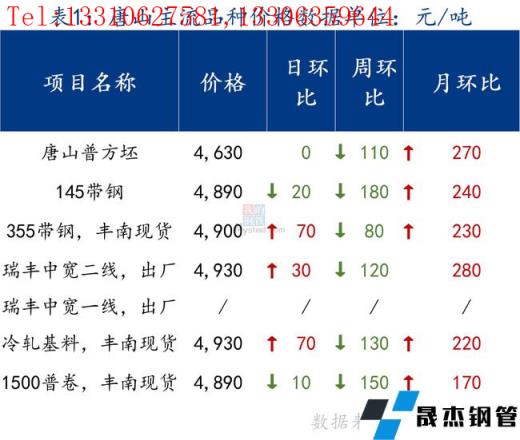 今日唐山管帶價(jià)格漲跌互現(xiàn),其中355帶鋼價(jià)格較上一交易日漲70元/噸,145帶鋼較上一交易日跌20元/噸,管材價(jià)格暫且持穩(wěn)。市場成交增量。