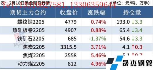 熱軋板卷:2月18日,全國24個(gè)主要城市4.75mm熱軋板卷均價(jià)5007元/噸,較上個(gè)交易日下跌3元/噸。據(jù)2月17日公布的數(shù)據(jù)來看,熱軋板卷周度產(chǎn)量及社會(huì)庫存均出現(xiàn)回升,當(dāng)前冬奧會(huì)對熱卷產(chǎn)量影響弱于預(yù)期,無縫厚壁鋼管廠家存在復(fù)產(chǎn)預(yù)期,另外受全國范圍內(nèi)疫情的影響,下游復(fù)工進(jìn)度偏慢,需求尚未完全釋放。但前期原料端政策調(diào)控放緩,市場情緒基本釋放完畢,以及元宵節(jié)后多數(shù)企業(yè)生產(chǎn)將陸續(xù)恢復(fù),需求將逐漸啟動(dòng),價(jià)格下行空間收窄。綜合來看,預(yù)計(jì)下周熱軋板卷價(jià)格或?qū)⒕S持震蕩為主。