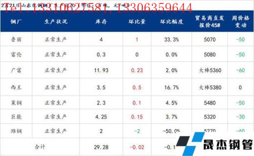 數(shù)據(jù):山東優(yōu)特?zé)o縫厚壁鋼管廠家?guī)齑?9.28萬噸,環(huán)比增下降0.02萬噸,減少0.07%,同比減少1.29萬噸,減少4.22%。