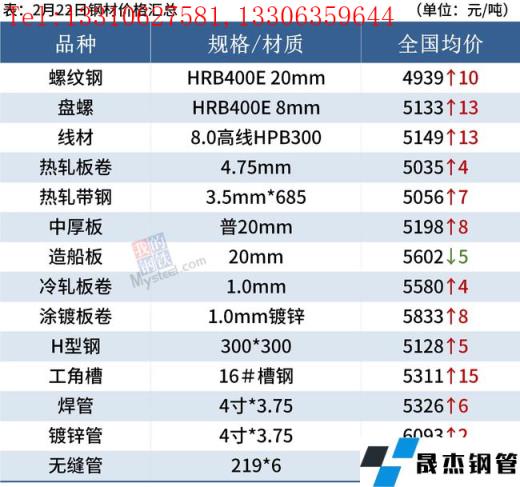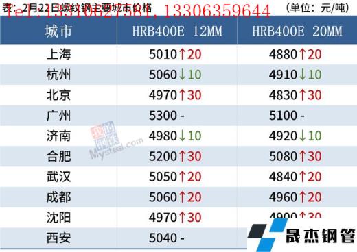 建筑厚壁無縫鋼管:2月22日,全國31個主要城市20mm三級抗震螺紋鋼均價4939元/噸,較上個交易日上漲10元/噸。短期來看,消費雖有恢復(fù)預(yù)期但下游資金到位情況較差,前期偏高的春季消費預(yù)期大概率將被證偽,若本周需求仍無明顯好轉(zhuǎn)跡象,則現(xiàn)貨存在繼續(xù)下跌的風險,預(yù)計23日國內(nèi)建筑厚壁無縫鋼管或?qū)⒎€(wěn)中趨弱運行。