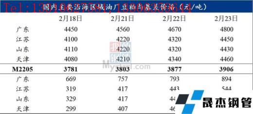 具體來(lái)看下表最近4個(gè)交易日豆粕期現(xiàn)貨價(jià)格,以沿海主要區(qū)域廣東、江蘇、山東、天津?yàn)槔?。出現(xiàn)豆粕現(xiàn)貨單邊價(jià)格與基差價(jià)格齊飛盛況,怎一“漲”’字了得?豆粕現(xiàn)貨價(jià)格每個(gè)交易日超100元/噸的速度飛奔。據(jù)農(nóng)產(chǎn)品數(shù)據(jù)顯示,沿海主要區(qū)域2月18-2月22日現(xiàn)貨價(jià)格由4080-4450元/噸,漲至4430-4800元/噸,累計(jì)上漲350元/噸,累計(jì)漲幅7.87%-8.58%;現(xiàn)貨基差價(jià)格由299-699元/噸,漲至524-894元/噸,累計(jì)上漲195-225元/噸,累計(jì)漲幅2.79-7.53%。