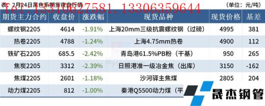 ◎2月24日,全國主港鐵礦石成交62.80萬噸,環(huán)比減8.3%;237家主流貿(mào)易商建材成交9.02萬噸,環(huán)比減24.8%。