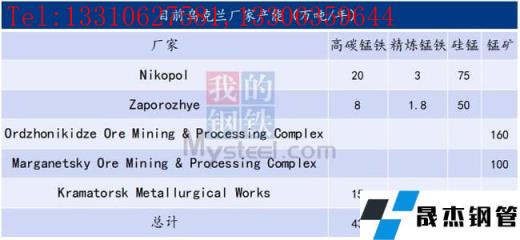 鐵合金企業(yè):Nikopol是烏克蘭最大的一家鐵合金生產(chǎn)商,而第二Zaporozhye Ferroalloy Plant 擁有80多年的歷史,產(chǎn)量占烏克蘭的30-35%,占全球鐵合金產(chǎn)量的1-2%。Zaporozhye擁有29臺電弧爐,2臺直流電爐。出口國家有俄羅斯、白俄羅斯、哈薩克斯坦、歐盟國家以及土耳其、埃及、日本、韓國等。