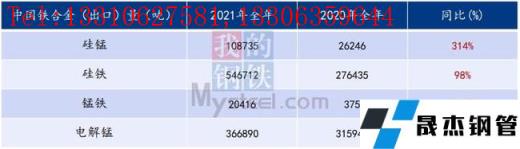 據(jù)統(tǒng)計,2021年國內(nèi)硅錳、硅鐵、錳鐵、電解錳合金出口量均有不同程度的抬升,得益于2021年全球粗鋼產(chǎn)量的增加,(19.505億噸,同比提高3.7%)。