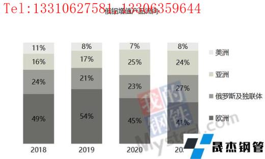 俄鋁公開報(bào)告顯示,俄鋁增值產(chǎn)品(加工產(chǎn)品)主要流向?yàn)闅W洲、俄羅斯及獨(dú)聯(lián)體、亞洲及美洲。其中歐洲為主要出口市場(chǎng),2021年發(fā)往歐洲的增值產(chǎn)品量占總量的41%。自2018年美國(guó)制裁俄鋁事件發(fā)生后,俄鋁的出口流向有所調(diào)整,其中亞洲比重逐漸上升。