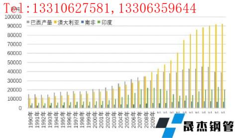 1990年-2020年主要鐵礦石生產(chǎn)國產(chǎn)量情況