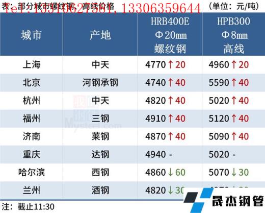 ◎北京:28日早盤(pán)建材市場(chǎng)價(jià)格價(jià)格漲40,河鋼小螺紋4850-4870,大螺紋4710-4740,盤(pán)螺4930(單位:元/噸)