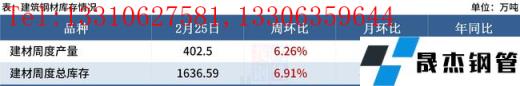 本周建筑厚壁無縫鋼管價(jià)格呈現(xiàn)修復(fù)上漲的概率大,不過北方需求恢復(fù)較慢、產(chǎn)量回升快,南方市場表現(xiàn)相對要活躍一些,區(qū)域市場價(jià)格可能分化,價(jià)格在修復(fù)過程中或?qū)⒊尸F(xiàn)南強(qiáng)北弱的特點(diǎn)。