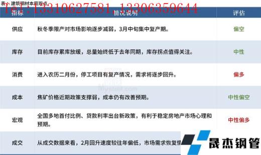 供應(yīng)層面,隨著冬奧會結(jié)束,無縫厚壁鋼管廠家集中復(fù)產(chǎn),若邯鄲地區(qū)限產(chǎn)不加嚴(yán),預(yù)計(jì)未來一段時間無縫厚壁鋼管廠家周產(chǎn)量或維持130萬噸左右;流通環(huán)節(jié),從貿(mào)易商庫存成本去分析,年前資源已經(jīng)沒有利潤,年后到的資源已經(jīng)虧損,短期存在成本支撐;需求方面,下游需求緩慢恢復(fù)中,雖不及預(yù)期,但好在廠庫、社庫均不高,需求尚有等待空間。綜合預(yù)計(jì),短期市場存在底部支撐,預(yù)計(jì)本周中厚板價(jià)格企穩(wěn)為主。