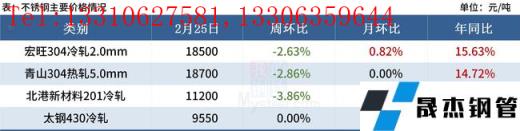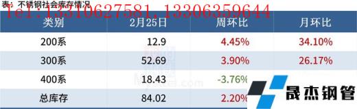 近期鎳鐵成交減少價(jià)格企穩(wěn),部分成交下探,而304廢不銹鋼價(jià)格下調(diào),不銹鋼方面無縫厚壁鋼管廠家挺價(jià)心態(tài)減弱,目前3月份無縫厚壁鋼管廠家排產(chǎn)并無減產(chǎn)計(jì)劃,但接單相對乏力,后續(xù)到貨或?qū)⒊掷m(xù)增加,預(yù)計(jì)本周304現(xiàn)貨價(jià)格高位盤整運(yùn)行。