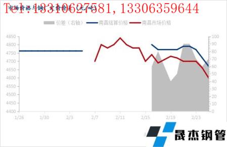 冬儲期間,也就是2月上旬與中旬FDTG建材南昌市場采取保價政策,即1月26日至2月5日無縫厚壁鋼管廠家定價為2月16日至2月25日這旬日定價均值,2月6日至2月15日無縫厚壁鋼管廠家定價為2月26日至3月7日期間日定價均值,當(dāng)前2月上旬與下旬的無縫厚壁鋼管廠家定價已出,中旬定價還未出。南昌市場FDTG螺紋鋼成交價與無縫厚壁鋼管廠家每日定價差值,如下表所示。