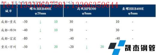從川渝主要城市建筑厚壁無縫鋼管價(jià)格來看,其中成都、綿陽、瀘州、宜賓、重慶等市場(chǎng)價(jià)格下跌20-30元/噸,西昌、南充、萬州市場(chǎng)價(jià)格平穩(wěn)運(yùn)行。