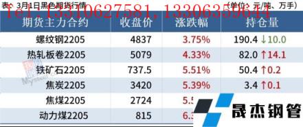 3月1日,國內厚壁無縫鋼管市場漲幅擴大,唐山普方坯出廠價漲50報4600元/噸。今日黑色系期市大幅上漲,現(xiàn)貨市場跟漲,市場情緒積極,成交放量。