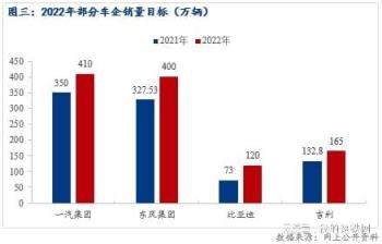 除以上車企外,在網(wǎng)上的公開資料還了解到,廣汽集團2022年產(chǎn)銷目標同比增長15%,長城汽車銷量目標190萬輛;“蔚小理”銷量目標均超過20萬輛;華為銷量目標30萬輛等。從以上車企的銷量目標來看,大部分車企對于今年的汽車市場寄予厚望。