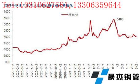 回顧價(jià)格方面,截止2月28日,廣州市場(chǎng)主流螺紋鋼銷售價(jià)格5030元/噸,較1月底(5000元/噸)上漲30元/噸,漲幅為0.6%,由于2月份整體市場(chǎng)表現(xiàn)為沖高回落,目前現(xiàn)貨價(jià)格已經(jīng)回歸到春節(jié)水平。2月份以來(lái),在春節(jié)因素下,上旬價(jià)格基本平穩(wěn);節(jié)后開(kāi)市在宏觀數(shù)據(jù)利好、無(wú)縫厚壁鋼管廠家助推以及限產(chǎn)預(yù)期下,市場(chǎng)迎來(lái)開(kāi)門(mén)紅行情,隨后在原料強(qiáng)調(diào)控下,價(jià)格沖高回落。一方面,鐵礦石及雙焦持續(xù)受政策性調(diào)控,制約成材價(jià)格反彈空間;另一方面,國(guó)際形勢(shì)緊張疊加疫情反復(fù)以及需求釋放預(yù)期落空導(dǎo)致價(jià)格進(jìn)一步回落。節(jié)后市場(chǎng)走勢(shì)基本上把慣性拉漲過(guò)后的疲軟表現(xiàn)的淋漓盡致。短期來(lái)看,目前價(jià)格回到節(jié)前水平,但節(jié)前有備貨的商家基本上落袋為安,節(jié)前低價(jià)資源逐漸售空,短期貿(mào)易商現(xiàn)貨成本偏高,對(duì)價(jià)格有一定支撐。
