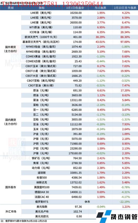 近期,受國際局勢影響,全球金融及大宗商品市場出現較大波動。3月2日,多個大宗商品價格創(chuàng)多年新高,天然氣累計漲幅超80%,原油突破110美金。匯總情況如下: