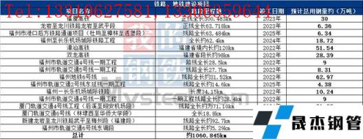 未來2-3年福建省鐵路、地鐵項目在建新建線路總長約1060.845公里,據(jù)不完全統(tǒng)計預計總用鋼量約283.082萬噸左右。