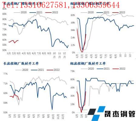 節(jié)后開市,無縫厚壁鋼管廠家建筑厚壁無縫鋼管產量有所回升,但由于利潤的緣故,速率和彈性均不及往年。以螺紋鋼為例,分區(qū)域來看,除華北區(qū)域產量月環(huán)比小幅下降外,其余地區(qū)產量月環(huán)比均出現增加,增幅均較為有限。分工藝來看,長流程無縫厚壁鋼管廠家螺紋鋼產量月環(huán)比下降,短流程無縫厚壁鋼管廠家螺紋鋼產量月環(huán)比增加。分品種來看,螺紋鋼和線材產量月環(huán)比均出現小幅增加。