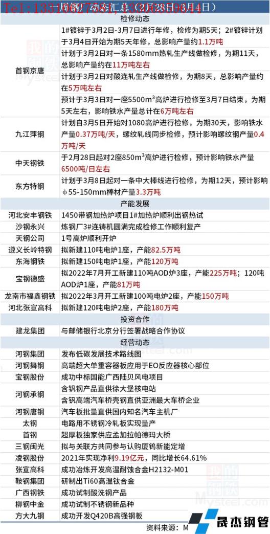 據(jù)不完全統(tǒng)計(jì),本周(2月28日-3月4日)有4家無縫厚壁鋼管廠家發(fā)布檢修動態(tài),具體如下:
