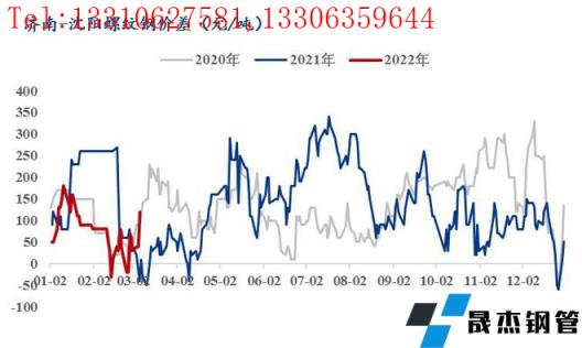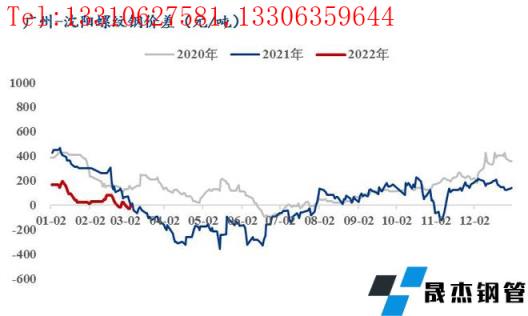 2月螺紋北京-沈陽月均價(jià)差+42元/噸,廣州-沈陽月均價(jià)差+33元/噸,上海-沈陽月均價(jià)差-89元/噸,濟(jì)南-沈陽月均價(jià)差+40元/噸。雖然本地尚未全面啟動(dòng),但本地?zé)o縫厚壁鋼管廠家跟漲節(jié)奏較快,帶動(dòng)市場(chǎng)報(bào)價(jià)整體上漲,即東北價(jià)格繼續(xù)處在較高水平,南北無合適的價(jià)差已經(jīng)成為常態(tài)。