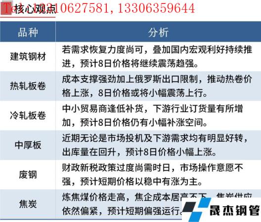 建筑厚壁無縫鋼管:3月7日,全國31個主要城市20mm三級抗震螺紋鋼均價5037元/噸,較上個交易日上漲91元/噸。短期來看,供應方面,隨著冬奧會的結束,3月產量回升是確定性事件,在殘奧會及兩會結束后,產量的回升速度將進一步加快;成交方面,進入金3月下游終端陸續(xù)復工,現(xiàn)貨價格跟隨期貨價格反彈后,成交也較2月逐漸進入正軌。綜合來看,在3月市場需求不斷回暖的情況下,還需繼續(xù)驗證需求能否大規(guī)模持續(xù)復蘇,若需求恢復力度尚可,疊加國內宏觀利好持續(xù)推進,預計8日國內建筑厚壁無縫鋼管價格將繼續(xù)震蕩趨強。