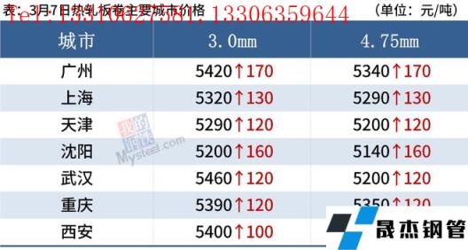 3月7日,國內厚壁無縫鋼管市場全線上漲,唐山普方坯出廠價漲70報4810元/噸。今日黑色商品期貨市場大漲,厚壁無縫鋼管現(xiàn)貨市場成交明顯放量,無縫厚壁鋼管廠家及貿易商積極拉漲鋼價。