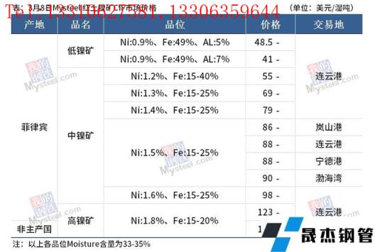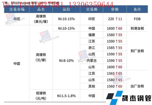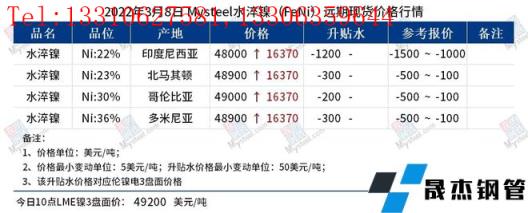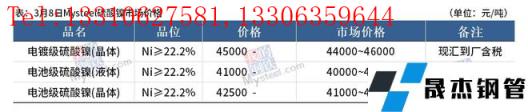 免責(zé)聲明:本網(wǎng)站(山東聊城晟杰無(wú)縫鋼管廠www.androidrecoverysoftware.com)刊載的“鎳產(chǎn)業(yè)鏈價(jià)格(2022.3.8)”等均源于網(wǎng)絡(luò),版權(quán)歸原作者所有,且僅代表原作者觀點(diǎn),本文所載信息僅供參考。轉(zhuǎn)載僅為學(xué)習(xí)與交流之目的,如無(wú)意中侵犯您的合法權(quán)益,請(qǐng)及時(shí)聯(lián)系刪除。本網(wǎng)站刊登此篇文章并不意味著本站贊同其觀點(diǎn)或證實(shí)其內(nèi)容的真實(shí)性,我們不對(duì)其科學(xué)性、嚴(yán)肅性等作任何形式的保證。如果侵犯了您的版權(quán),請(qǐng)盡快聯(lián)系我們予以撤銷,謝謝合作!
