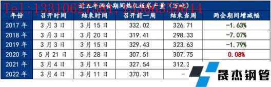 從產(chǎn)量來看,近五年兩會(huì)期間熱軋板卷產(chǎn)量除2020年基本持平之外,其余年份均有所下降,其中2018年的降幅較大,達(dá)到了7.07%;2021年的降幅也達(dá)到了4.86%;而2017年與2019年產(chǎn)量跌幅較緩,分別為1.63%和1.79%。