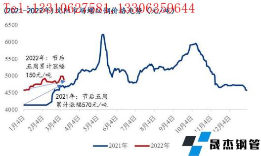 1.春節(jié)后東北市場的螺紋鋼價格呈現(xiàn)先漲后跌震蕩運行的態(tài)勢,習(xí)慣性的開門紅帶動了本地價格的整體上漲,但因需求釋放緩慢、實質(zhì)性成交稀少,價格上漲呈現(xiàn)疲態(tài);進(jìn)入3月冬儲資源結(jié)算期后,無縫厚壁鋼管廠家頻繁上調(diào)價格,商家成本連續(xù)攀升,支撐價格高位運行,節(jié)后五周螺紋累計漲幅在150元/噸;