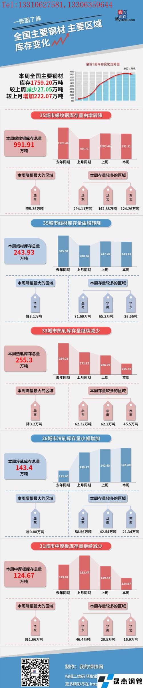 本周,全國(guó)主要厚壁無(wú)縫鋼管社會(huì)庫(kù)存1759.2萬(wàn)噸,較上周減少27.05萬(wàn)噸,較上月增加222.07萬(wàn)噸;螺紋鋼庫(kù)存總量991.91萬(wàn)噸。