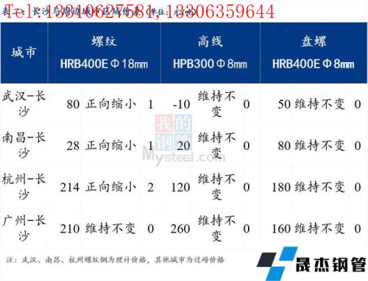 統(tǒng)一為理計單位后,武漢高于長沙80元/噸,南昌高于長沙28元/噸,杭州高于長沙214元/噸,廣州高于長沙210元/噸。長沙市場資源可以流向華東和廣東地區(qū)。