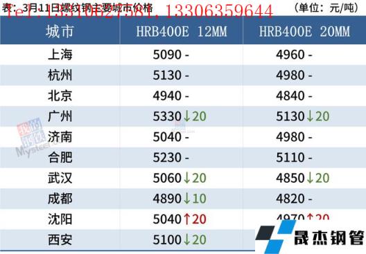 建筑厚壁無縫鋼管:3月11日,全國31個主要城市20mm三級抗震螺紋鋼均價(jià)4952元/噸,較上個交易日跌9元/噸。短期來看,近期產(chǎn)量回升有限,短流程無縫厚壁鋼管廠家受成本影響,生產(chǎn)不飽和;需求端,本周需求全面回升,且?guī)齑娉霈F(xiàn)拐點(diǎn)。綜合來看,近期供需雙增,但由于國際局勢不穩(wěn),現(xiàn)貨市場整體表現(xiàn)或維持窄幅震蕩為主。