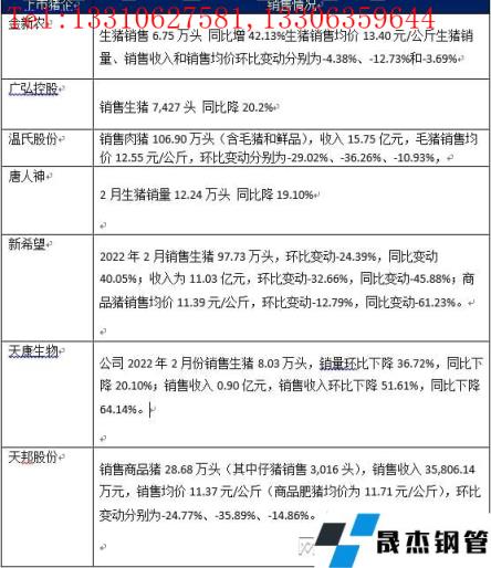部分上市豬企2月份生豬銷售情況