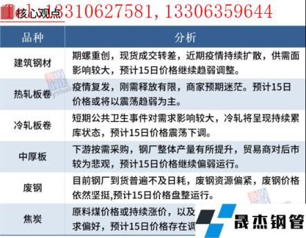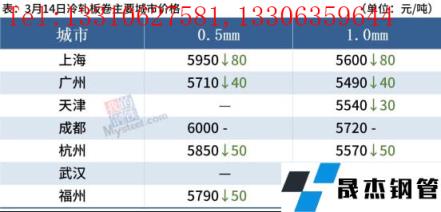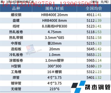 中厚板:3月14日,全國24個主要城市20mm普板均價5215元/噸,較上個交易日下跌33元/噸。今日期市接連下行,市場心態(tài)不佳,長三角區(qū)域午后接連補跌,受近期運力下降,下游單位按需采購,無縫厚壁鋼管廠家整體產(chǎn)量有所提升,貿(mào)易商對后市較為悲觀,投機性鎖價訂單比例降低,市場發(fā)生降價保銷現(xiàn)象,預(yù)計15日中厚板價格繼續(xù)偏弱運行。