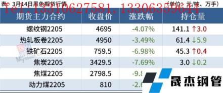 熱軋板卷:3月14日,全國24個主要城市4.75mm熱軋板卷均價5118元/噸,較上個交易日下跌53元/噸。黑色商品期貨市場大幅下挫,下游采購量觀望,商家心態(tài)悲觀,全天成交清淡。綜合來看,當(dāng)前疫情呈現(xiàn)復(fù)發(fā),剛需釋放有限,商家預(yù)期迷茫。短期鋼價震蕩運行,既因為情緒受到期貨市場的引導(dǎo),又因為需求沒有放量的跡象,而無縫厚壁鋼管廠家起到"托舉"的作用。綜合來看,預(yù)計15日熱軋板卷價格或震蕩下行為主。