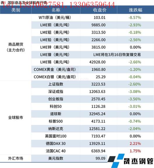 ◎ 倫敦金屬交易所(LME)稱鎳合約將在當(dāng)?shù)貢r間3月16日恢復(fù)交易,并對所有金屬的每日價格波動施加15%幅度的限制。