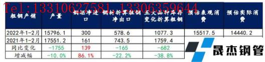 綜上所述,1-2月粗鋼實際消費同比降幅僅為5%,明顯高于市場預(yù)期。但從后期供需預(yù)估表現(xiàn)來看,厚壁無縫鋼管復(fù)產(chǎn)節(jié)奏或高于需求釋放力度,進而使得消費承壓,價格上漲難度加大。