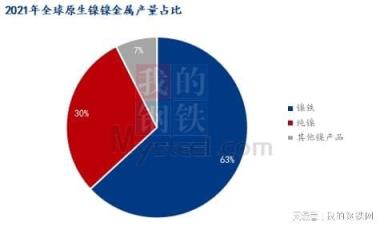 原生鎳中,63%為鎳鐵,鎳鐵中78%為鎳生鐵、22%為水淬鎳。鎳生鐵又可分為低、中、高鎳生鐵,對(duì)應(yīng)鎳含量為1.5%-1.8%、4%-8%、8%-15%。