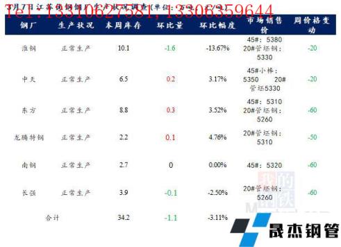江蘇優(yōu)特無縫厚壁鋼管廠家棒材總庫存34.2萬噸,較上周下降1.1萬噸,環(huán)比降3.12%,較去年同期下降7.97萬噸,同比降18.9%,目前江蘇優(yōu)特無縫厚壁鋼管廠家除東方特鋼一條棒材線檢修外,其余無縫厚壁鋼管廠家正常生產。