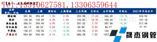 據(jù)統(tǒng)計,建材方面,分品種來看,螺線延續(xù)雙增趨勢,但幅度收窄;分域來看,除華東、華南和西南少量減產(chǎn),其余區(qū)域均有增量;從省份來看,安徽、山西、新疆和黑龍江增量明顯,主因在于鐵水恢復,設備復產(chǎn);山東、江西、四川降產(chǎn)突出,主因在于原料不足/限產(chǎn)而檢修或停產(chǎn);從工藝角度來看,本周增產(chǎn)貢獻率集中于長流程生產(chǎn)企業(yè),短流程供應變化不大。熱卷方面,本周熱軋產(chǎn)量大幅回升,主要增幅地區(qū)是華北地、華東、華中地區(qū),主要是冬殘奧會限產(chǎn)結束,前期限產(chǎn)無縫厚壁鋼管廠家基本14號開始陸續(xù)復產(chǎn),導致本周產(chǎn)量大幅回升。