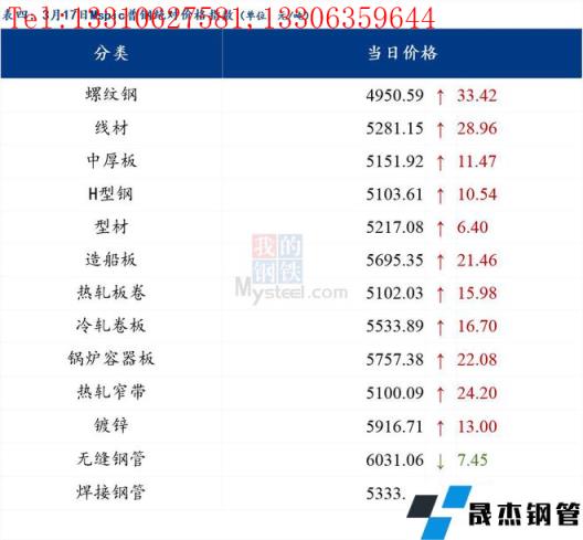3月17日普鋼絕對(duì)價(jià)格指數(shù)變化:綜合指數(shù)5193.62,上漲21.4;螺紋鋼指數(shù)4950.59,上漲33.42;線材指數(shù)5281.15,上漲28.96;熱軋板卷指數(shù)5102.03,上漲15.98;冷軋板卷指數(shù)5533.89,上漲16.7;中厚板指數(shù)5151.92,上漲11.47。